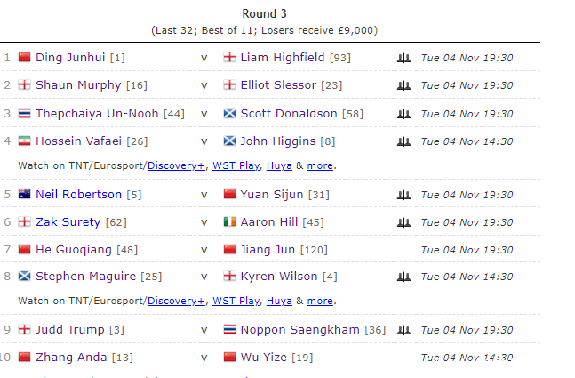 第一个比赛日,卫冕冠军丁俊晖、今年世锦赛冠军赵心童、,以及斯佳辉、肖国栋、张安达等高手全部获胜晋级。来到第二个比赛日,丁俊晖、赵心童、斯佳辉、张安达依旧强势前进。